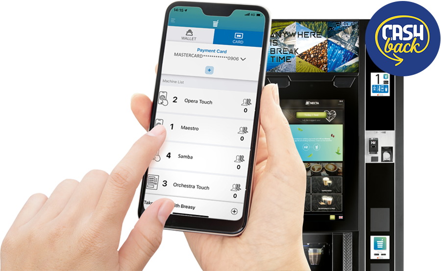 Break Italia offre opzioni di pagamento moderne ed innovative : ai distributori automatici di bevande o alimenti basta usare l'app Breasy .